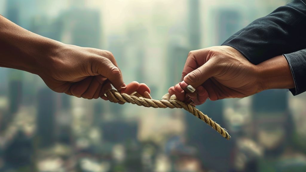 최저임금을 정할 때 노동자와 사용자, 즉 노사 양측은 서로 다른 주장을 펼쳐요. 노동계는 최저임금을 올려서 더 나은 생활을 하고 싶어 하고 , 경영계는 최저임금이 오르면 회사가 힘들어지니 신중해야 한다고 이야기하죠 . 왜 그럴까요? 서로의 입장이 너무나 다르기 때문이에요. 마치 줄다리기처럼 팽팽하게 맞서고 있답니다 .