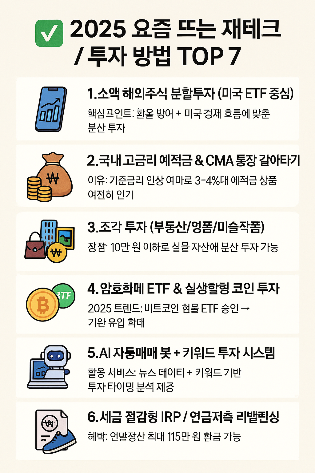 ✅ 2025 요즘 뜨는 재테크 / 투자 방법 TOP 7